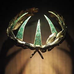 作为重要的演出道具,舞台珠宝不仅能够揭示演员角色身份、地位,更能推动剧情发展。虽然舞台珠宝多以玻璃、合金等非贵重材质打造,但其背后却蕴藏着丰厚的历史底蕴和精湛工艺。2017年,L’ÉCOLE 珠宝艺术中心启动了一项专题研究项目,旨在揭开法兰西喜剧院珍藏的舞台珠宝背后的奥秘,亦支持修复了部分藏品,得益于此,诸多舞台珠宝遗珍得以与沪上观众见面。本次展览荟萃法国历代知名演员佩戴过的舞台珠宝,如拿破仑赠予 Talma 的镀金金属桂冠、Rachel 在戏剧《费德尔》中佩戴的宝石冠冕、Mounet-Sully 在戏剧《阿达莉》中佩戴的胸饰,以及法国珠宝大师 René Lalique 献给 Sarah Bernhardt 的胸针等,邀请观众饱览舞台珠宝的工艺细节和设计巧思,一窥法国戏剧名伶的传奇风采。
