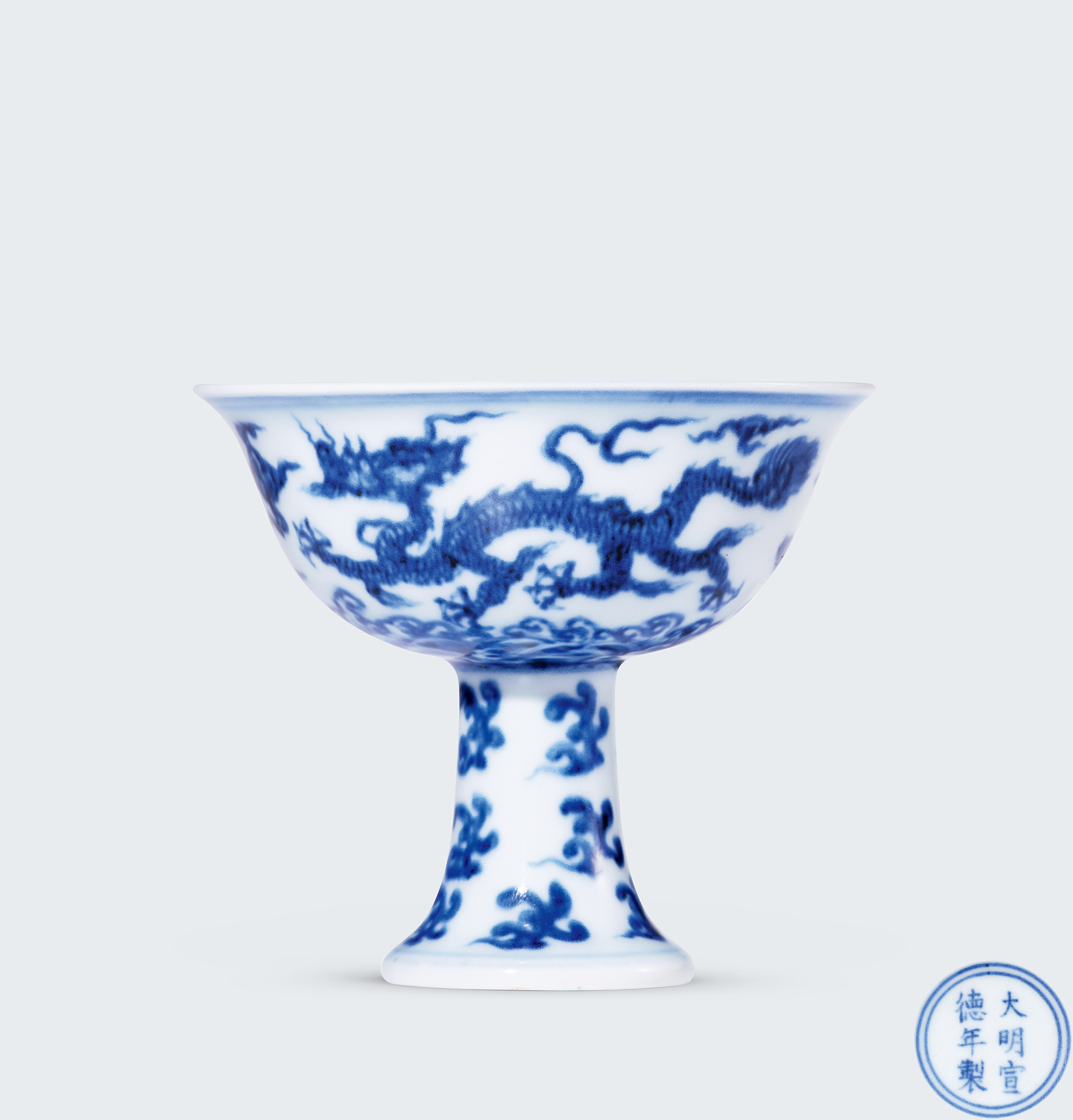 青花云龙纹高足杯,明宣德