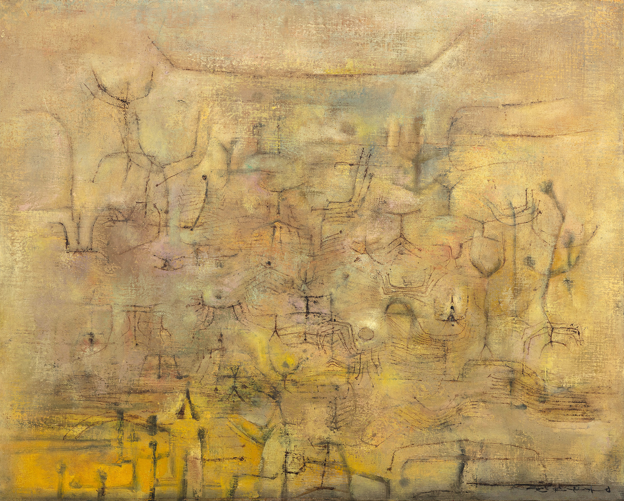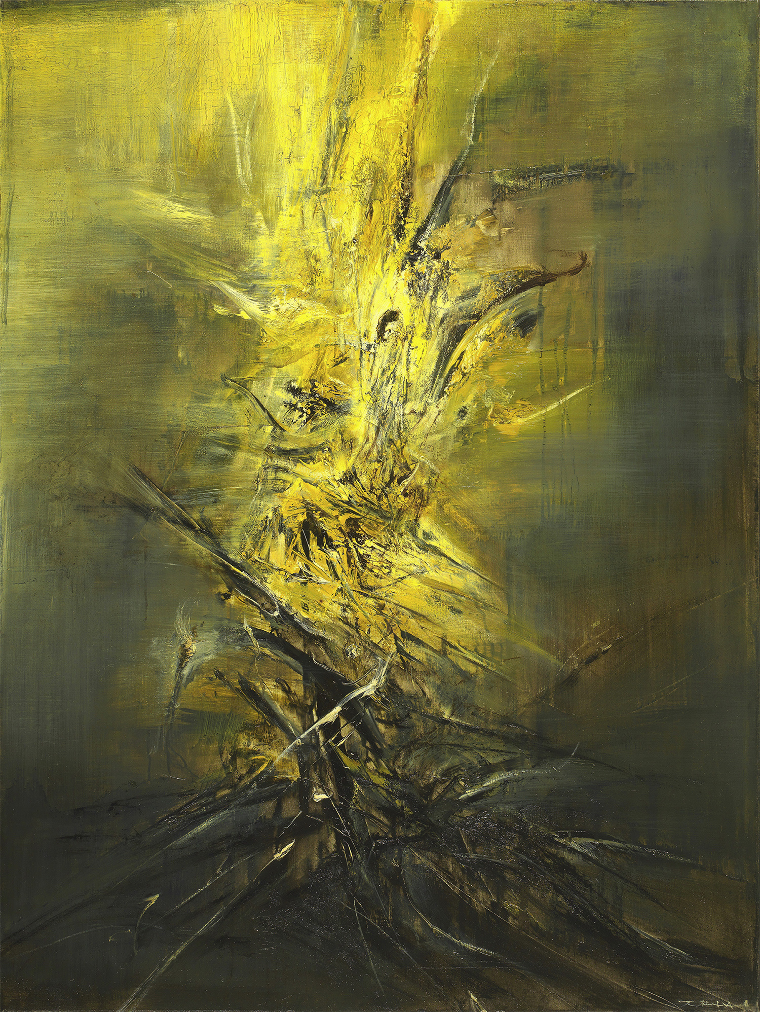 二十世纪及当代艺术展区悉心择选关良、丘堤、程丛林、周春芽、张培力、刘小东等现当代艺术家的重磅力作,最大亮点为赵无极「狂草时期」的经典代表《14.12.62》,该作采用顶天立地式构图,镍黄色彩在水墨线条的汇合处喷薄而出,直指顶端而照亮四周,气象恢宏,震撼人心。