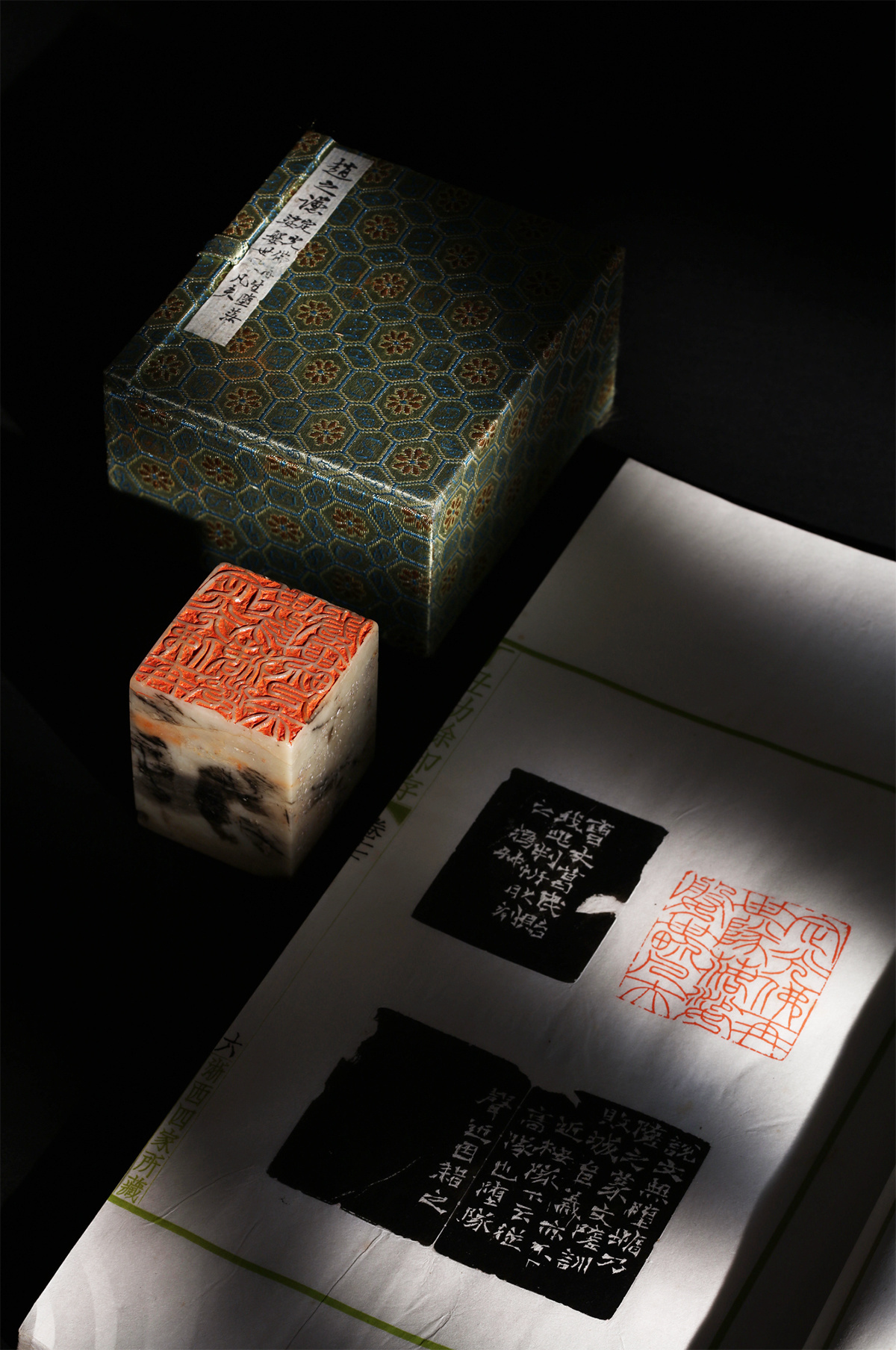 金石雅玩及古典家具展区荟萃金石彝鼎、文房清供、琴器木器及沉香雅玩,不乏流传有序的古董珍品,例如良渚神人纹九节大玉琮曾经端方、山中商会、安思远递藏,亞共祖乙父己卣出自瑞郡王旧藏,篆刻板块亦有赵之谦青田石自用印、《丁丑劫余印存》等重要文物亮相。
