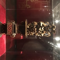 第二部分「乾坤戏场·神人同看」以礼为核心,重点展示潮州木雕中的宗祠家庙建筑装饰和用于祭祀的礼器,介绍祠堂中的民俗文化活动——迎神赛会,以及海外潮汕侨胞对宗族文化的传承与发展。
