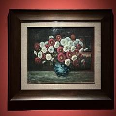 展出作品年代跨越20世纪中叶至今,亮点展品包括潘玉良《青瓶红菊》、周碧初《秋波双亭》、罗中立《喝水的农民》、王劼音《秋色》等。