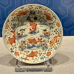 在川知乐款五彩鱼莲盘