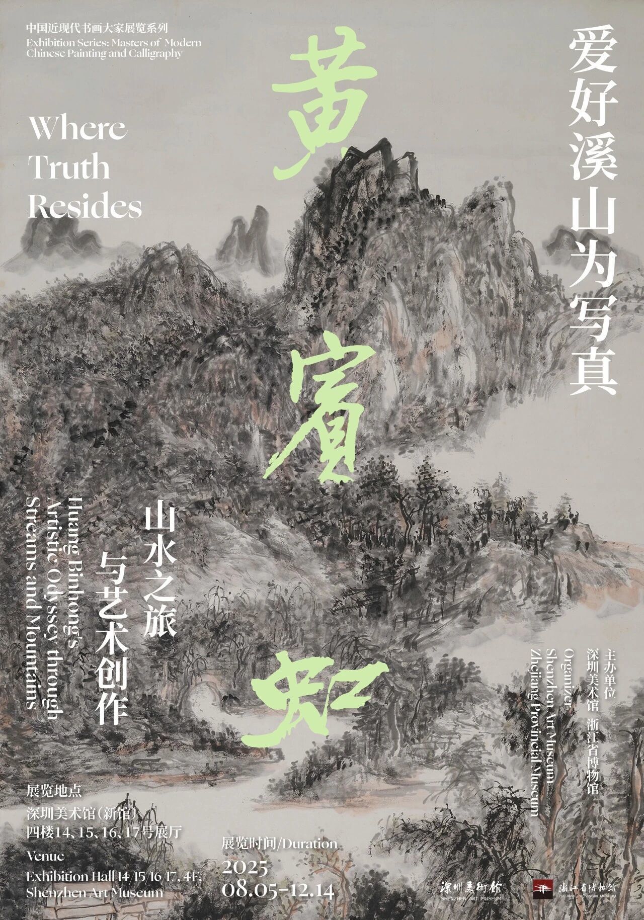 本次展览由深圳美术馆与浙江省博物馆联合主办,共陈列黄宾虹的山水作品及对联、信件、手稿、印章等近200件展品,集中呈现他在山水画方面的艺术造诣,引导参观者深入理解「山水画现代性转化」,体会黄宾虹的文化理想与精神寄托。