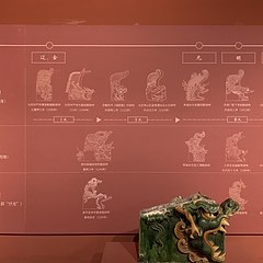 第一部分「天地凝韵」通过丰富的山西琉璃遗存,梳理早期琉璃艺术的发展序列:山西各地汉墓中出土了大量精美的低温釉陶明器;北朝时期,平城和晋阳先后成为政治文化中心,诸多重要遗址中都可见铅釉陶器;隋唐时期政权稳固、经济繁荣,三彩釉陶成就斐然;两宋时期中国北方政治、经济、文化发展迅速,在建筑上和墓葬中出现诸多琉璃精品。