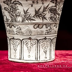 明洪武年间的釉里红岁寒三友梅瓶仅有两件,一件收藏于南京市博物馆,没有盖子;另一件带盖子的收藏在南京博物院,此次展出的便是这件现存惟一保存完整的洪武釉里红带盖梅瓶,1993年被国家文物局定为一级文物。