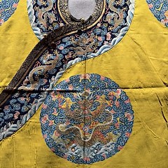 明黄色缂丝水墨墩兰纹棉氅衣,清同治