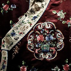 《游园·惊梦》酱紫色缎绣菊蝶纹九月花神衣,清光绪