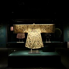 故宫博物院拥有世界上体系最完整的清代宫廷服饰收藏。本次展览遴选40件故宫博物院藏织绣品,涵盖成衣、戏衣、匹料、挂屏、配饰等多个门类,缂、绣、锦、缎等各色工艺,亮点包括康乾雍三代龙袍、昆曲《牡丹亭》戏服、缂丝宋徽宗花鸟图、光绪皇帝大婚御用服装配饰等。