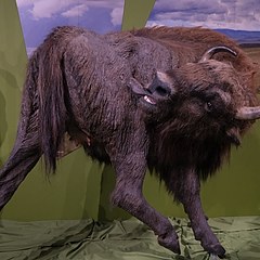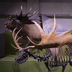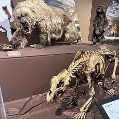 展览分为三个部分,第一部分聚焦冰河期的动物,通过来自德国赖斯·恩格尔霍恩博物馆的骨骼标本与复原模型,展示猛犸象、披毛犀、大角鹿、洞狮等大型哺乳动物,介绍它们的体型结构、生活习性以及灭绝情况。