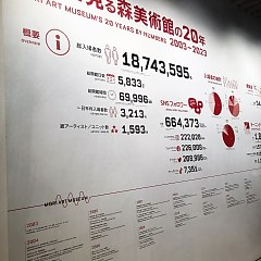 在此次展览中,逾一半展品来自森美术馆的收藏,包括与历年展览相关的作品,观者得以了解美术馆的收藏轨迹。美术馆也将以数字、图表的形式回溯开馆20年的历史,介绍迄今为止的参观者总数以及举办过的展览、活动数量,并借助世界地图按地域显示曾在森美术馆参展的艺术家或艺术团体的名字。