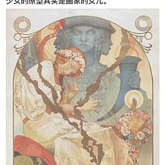 穆夏(Alfons Mucha)是捷克画家与装饰艺术家,也是19世纪欧洲新艺术运动的先锋人物。他的创作领域涵盖油画、雕塑、海报、插画、剧院设计、珠宝设计、装饰艺术等,曾负责设计了捷克第一套纸币、白狮子国徽、布拉格市民会馆室内装潢壁画、圣维塔大教堂彩绘窗户等。