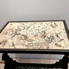 看到个临时特展,是与海南联合举办的清代外销艺术品展,多为日用品,包括瓷器、银漆器和牙雕,那是相当精致了。当中国的艺术品外销欧洲后,常由当地的工匠进一步装饰,添加花式支架、饰边和把手,使其更加美观。所以展品凝结了中国手工技艺与西方美学艺术,是东西方文化的碰撞相融。 纹章瓷器我倒是在其他博物馆见过不少,如此精致的银器和牙雕倒是少见,最令我震撼的要数三龙浮雕银壶(没记住名字)、黑漆描金庭院人物首饰盒与同组抽屉柜、白鸟那个桌案(没记住名字)、象牙雕三马柱花卉纹套球和牙雕国际象棋,太细腻太精致了,尤其是牙雕,那么细小却能雕刻的栩栩如生,还有套制结构,如此手艺堪称巧夺天工,。