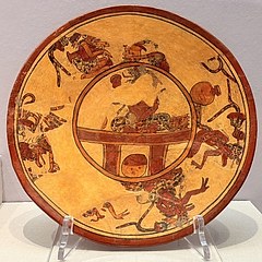 饰有祭司与鸟类的彩绘陶盘,古典晚期(600-900年),安帕罗博物馆藏