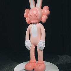 KAWS 1974年生于美国新泽西州泽西市,目前在纽约布鲁克林区居住及工作。他的创作涉及绘画、壁画、大型雕塑、街头艺术、平面和产品设计等领域,擅长挪用流行文化与动画元素,以强调色彩和线条的硬边画(Hard-edge painting)、融合了卡通人物和角色的作品而为大众熟知。