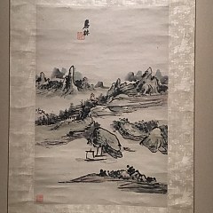 他的山水画创作经历了「师古人」、「师造化」和「融合古人造化形成个人风格」三个阶段,总结出「五笔」、「七墨」的笔墨观。此次展出的山水画以水墨为主,也有部分浅绛色和青绿山水。