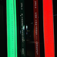 「海上华章」展区通过历史文献、实物藏品、场景还原等,呈现上海电影百余年发展进程中的五大创作高潮期:1930年代的左翼电影、战后的现实主义电影、新中国成立后的社会主义「人民电影」、改革开放后多维探索的电影,以及党的十八大以来多元繁荣的电影创作。