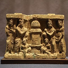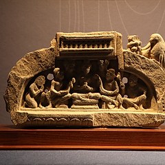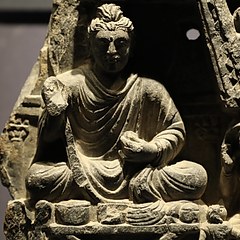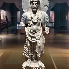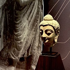 犍陀罗古国位于现在的巴基斯坦西北部、阿富汗中部,曾是古印度列国时代的「十六大国」之一。这一地区曾经先后由希腊人、塞种人、贵霜人、波斯人统治,希腊与罗马、波斯、印度等多元文明在此碰撞交流,与当地佛教文化相融合,形成了盛极一时的犍陀罗艺术。