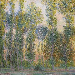克劳德·莫奈晚年定居法国小镇吉维尼,在人生的最后30年里,他创作了约250幅「睡莲」主题油画。早期这一系列作品画幅较小、风格写实,然而随着时间的推移,画作的尺幅变得越来越大,画风也越来越抽象。