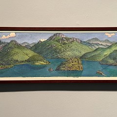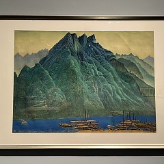 「生命时序」以《玉兰花开》为序曲,引领观者步入祝大年以工笔重彩谱写的生命诗篇。祝大年的工笔重彩画在写生提炼的基础上,赋予其对色彩造型意境的追求。《玉兰花开》完成于1976年,在构图上用整株玉兰撑满画面,繁复的玉兰花、枝干与简洁的水面、远山形成画面主基调。