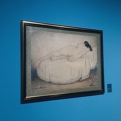 潘玉良两次旅法,接受西方体系的绘画教育,早期创作偏向西方古典写实风格,中后期受思乡之情和渴望回归中国文化的影响,在创作中表现出浓郁的东方情调,表现出「合中西于一冶」的特征。女性人体与自画像是她最常见的表现题材,反体现了对个人身份的挣扎与探求。