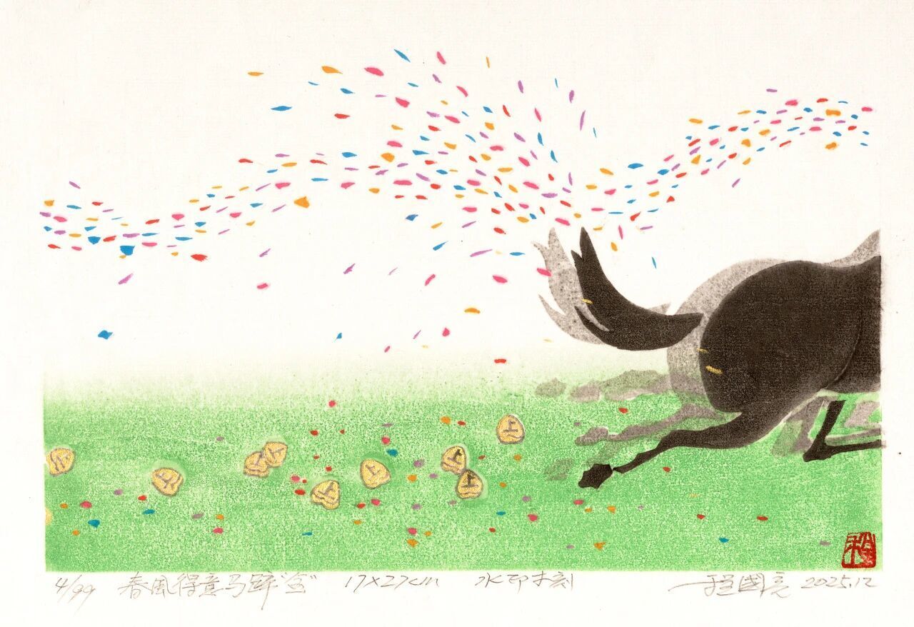 2026年是农历丙午马年,本次展览以「春风得意 丙午贺岁」为题,展出100幅入围投稿作品,以及18位国内外版画艺术家的特别支持作品,营造喜庆祥和的春节气氛。