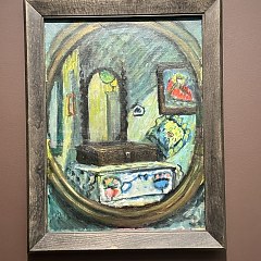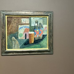 《电车上的静物(购物后)》(Still Life on the Tram (After Shopping)),Gabriele Münter,约1912年,纸板油画