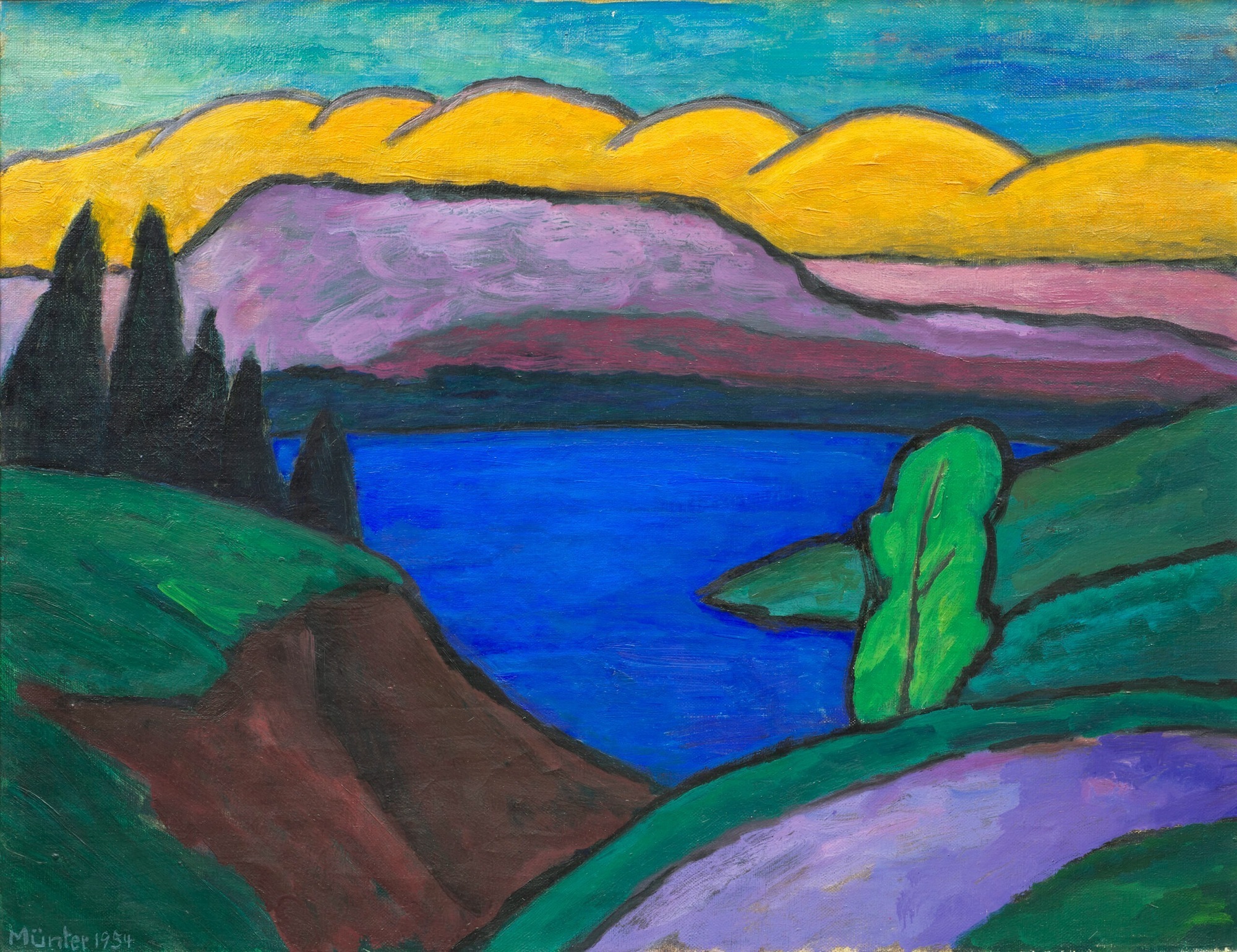 《蓝色的湖》(The Blue Lake),Gabriele Münter,1954年,布面油画