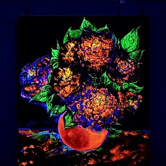 阿雅1994年生于北京,毕业于美国南加州大学,曾在遵义市美术馆、洛杉矶 Lindhurst Gallery 举办个展。她的作品多为黑暗背景,通过综合运用多种材料,以具象的、图形的、抽象的符号象征众神之力,呈现对于微观主体的内在审视和对宏观客体的独特认识。