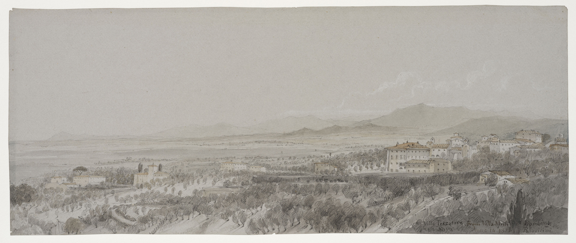 《从皮翁比诺穆蒂别墅眺望佩斯卡托雷别墅》(View of the Villa Pescatore from Villa Muti, Piombino),Lady Elizabeth Suzan Percy,1833年