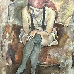 《裸女与条纹毯子》(Nude with a Striped Blanke),Suzanne Valadon,1922年