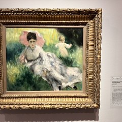 《撑伞的女人与小孩在洒满阳光的山坡上》(Woman with a Parasol and Small Child on a Sunlit Hillside),Pierre-Auguste Renoir,约1874-1876年,布面油画