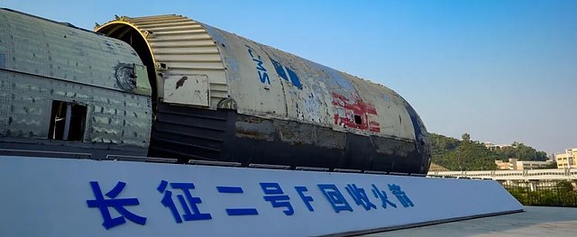 长征二号F遥十一运载火箭回收部件是载人航天工程的重要实物见证。该火箭曾于2016年执行飞行任务,成功护送航天员景海鹏、陈冬进入太空。箭体表面保留的烧灼痕迹与隔热瓦残留,直观反映了火箭再入大气层的过程。