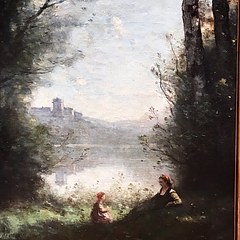 《湖边树下的姐妹》(Les Deux sœurs sous les arbres au bord du lac),Camille Corot,1865-1870年