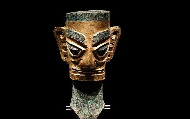 金面铜人头像,商代,四川广汉三星堆遗址出土,三星堆博物馆藏