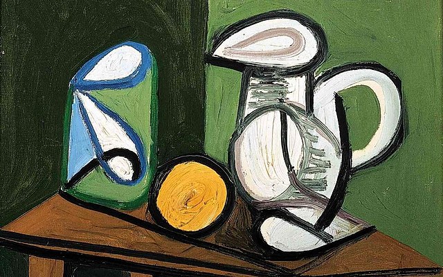 《静物:壶、玻璃杯和橙子》,毕加索,1944年