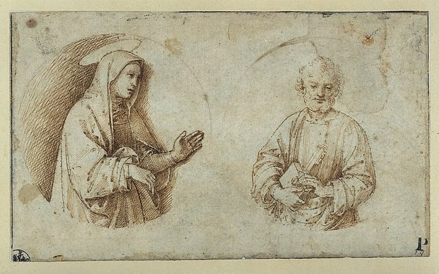 《圣彼得与圣母玛利亚的圆形肖像》,拉斐尔,约1502年