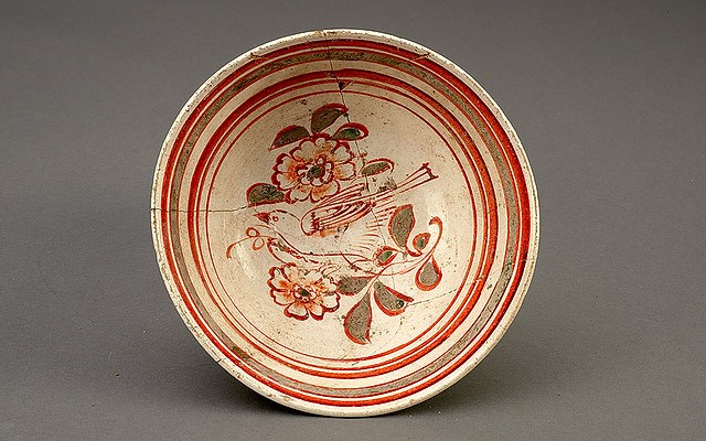 金白釉红绿彩花鸟纹碗