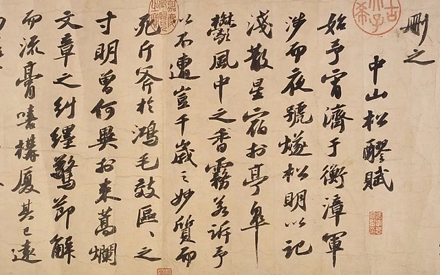 本次展览最重要的文物之一是吉林省博物院收藏的《苏轼行书洞庭中山二赋卷》,原件仅展出20天。王安石与苏轼均位列「唐宋八大家」,这件作品既体现了苏轼的文学与书法成就,亦折射出王、苏二人之间紧密而又复杂的关系。