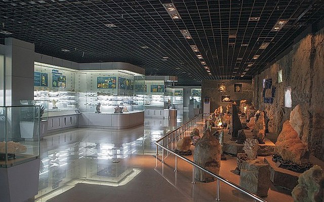 「矿物岩石」展出方铅矿、蓝铜矿、孔雀石、铁闪锌矿等矿物;