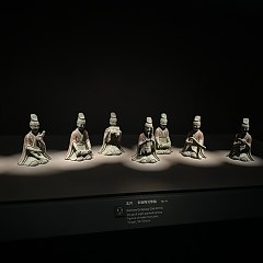 「古代陶俑展」遴选馆藏汉唐陶俑精品,以社会生活为主题,从行、衣、住、娱乐及音乐等角度进行陈列。俑是古代重要的随葬品类,其制作本身是基于对现实生活的反映,通过对俑的观察和研究,呈现古代人们的现实生活及对死后世界的构想。