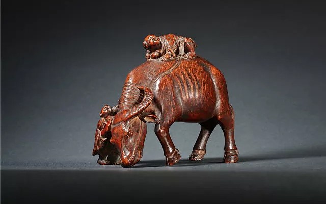 竹根雕刘海戏金蟾像,明代