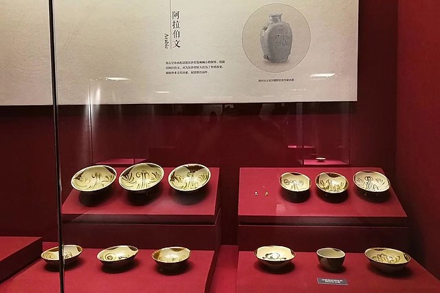 长沙铜官窑是唐代至五代的制瓷遗址,最初是岳州窑的外围窑场,始于东汉,兴盛于中晚唐,首创釉下彩和铜红釉瓷,并将诗词、谚语或广告用语融入装饰工艺。铜官窑陶瓷产品通过水运,从湘江进入长江,经扬州、宁波、广州等口岸,从海上丝绸之路远销至南亚和北非。