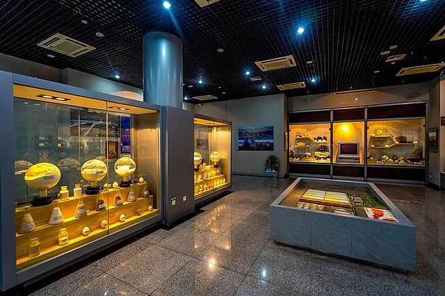 「金属矿产厅」「非金属矿产厅」「能源资源厅」综合介绍新疆矿产资源储量和开采状况,展出多种矿物标本及其工业产品。新疆是中国矿产资源最丰富的省区之一,已发现的矿种数量超过120种,其中铍、白云母、纳硝石、陶土、蛭石等种矿的储量居全国第一。
