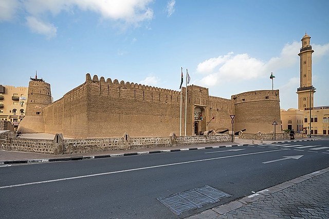 迪拜博物馆所在建筑阿法迪城堡(Al Fahidi Fort)是迪拜现存历史最悠久的建筑,塔楼最早建于1787年,主要是作为统治者的宫殿及防御堡垒,后来亦被用作储存炮弹和武器的军火库。
