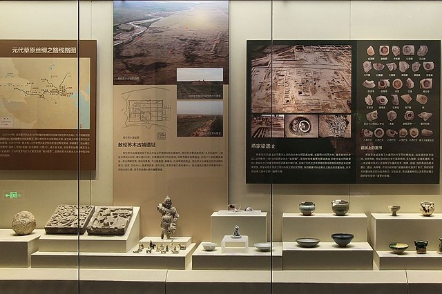 「包头燕家梁元代遗址考古成果展」是对燕家梁遗址局部性抢救发掘的成果展示。该遗址于1950年代初步勘查,遗址总面积约40万平方米,发掘近2万平方米,出土珍贵文物逾5000件,以元代瓷器、陶器居多,另有钱币超过3万枚。