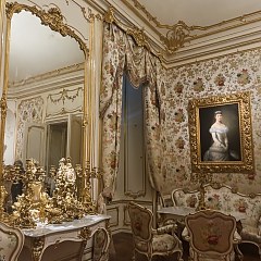 Elisabeth 的梳妆间亦使用黄檀木家具。因她长年旅居在外,Franz Josef I 拥有自己的独立卧室,他在书房内摆放着多张 Elizabeth 的照片和肖像画。