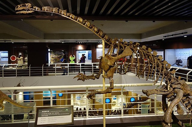 重要展品包括一件来自东非科摩罗的「活化石」拉蒂迈鱼(Latimeria)标本、亚洲最大的恐龙马门溪龙(Mamenchisaurus)、中国第一件恐龙化石标本许氏禄丰龙(Lufengosaurus huenei),以及「北京人」头盖骨模型等。