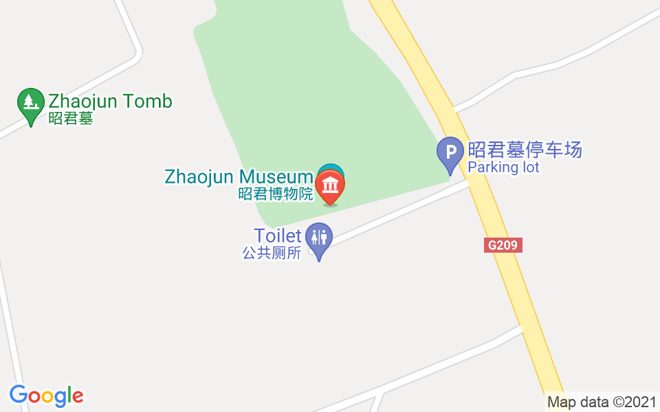 昭君墓在蒙古语中称为「特木尔乌儿虎」,意为「铁垒」,文献亦称「青冢」。关于昭君墓最早的记载出现在唐代,据考证该墓为汉代人工积土、夯筑而成,高约33米,底面积1.3万平方米。由于未进行考古发掘,因此无法确定为王昭君下葬的真实地点。
