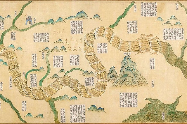 明代潘季驯曾经四次受命治理黄河,前后长达27年,他总结出「筑堤束水,以水攻沙」、「借河济运」的治理经验,万历十八年(1590)著有《河防一览》一书,书中收录了这幅图。